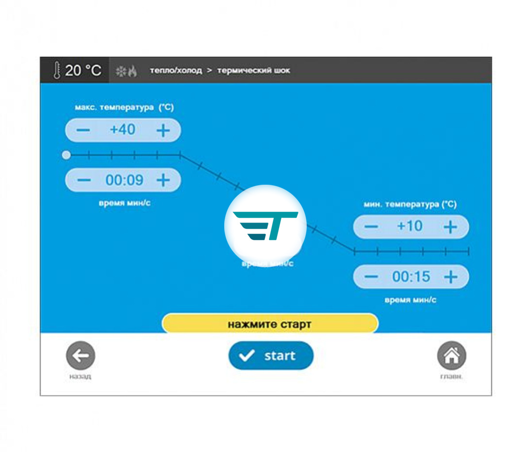• Термальный шок: падение температуры на 30°C (до +2°C) за 45 секунд